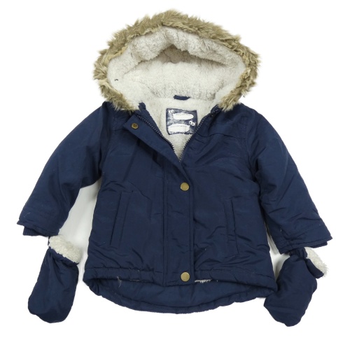 Tmavomodrá šušťáková zimná bunda s kapucí + rukavice