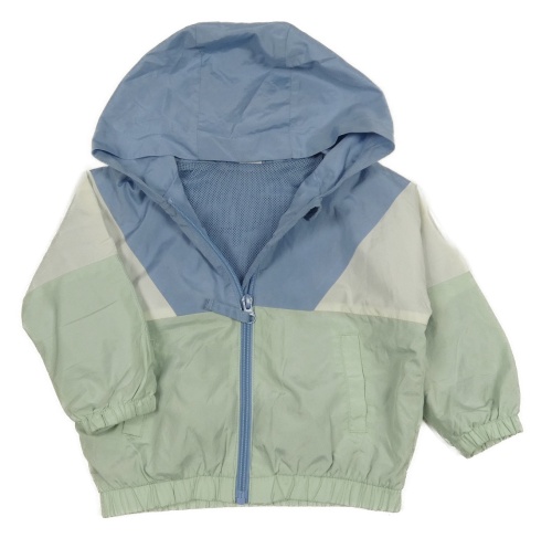 Kaki-modro-biela šušťáková jarná bunda s kapucňou