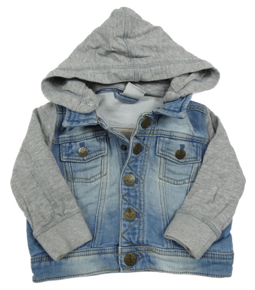 Modrá rifľová bunda s mikinovymi rukávy a kapucňou Topolino