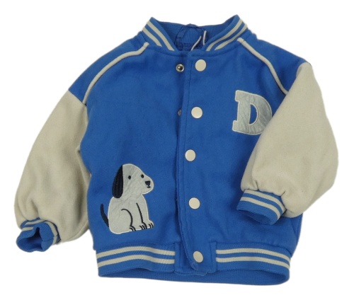 Modro-sivá flaušová podšitá baseballová bunda so psem a písmenem Sinsay
