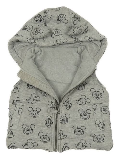 Sivá melírovaná prešívaná tepláková zateplená vesta s Mickey a Donaldem a kapucňou George