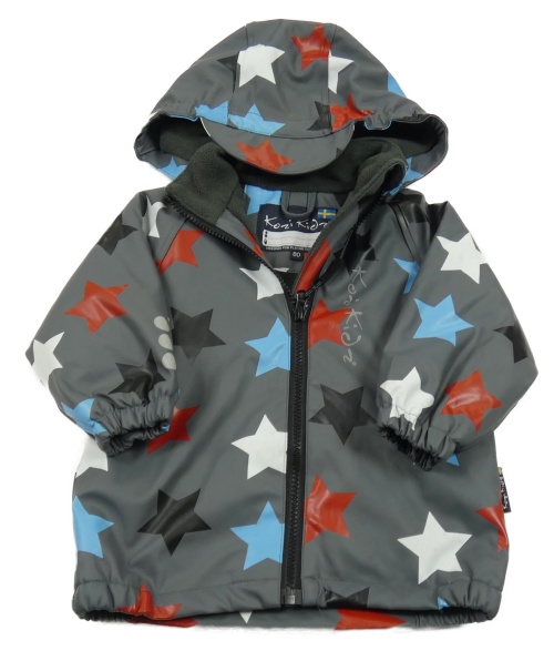 Tmavosivá nepromokavá zateplená bunda s hviezdami a kapucňou