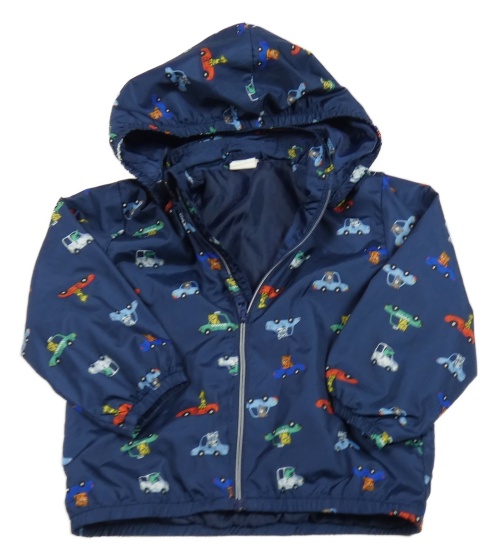 Tmavomodrá šušťáková jarná bunda s autami a kapucňou H&M