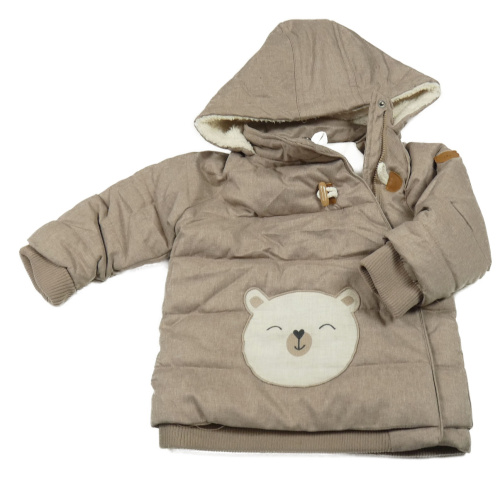 Béžová šušťáková zimná bunda s medvěďom a kapucňou Topomini