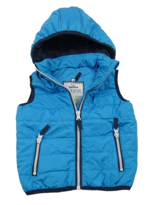 Modrá šušťáková zateplená vesta s kapucňou Topomini
