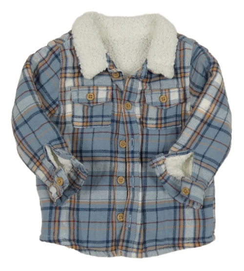 Modro-bielo-béžová kockovaná flanelová zateplená košeľová bunda Tu