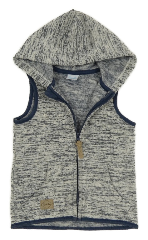Tmavomodro-sivá melírovaná pletená prepínaci vesta s kapucňou