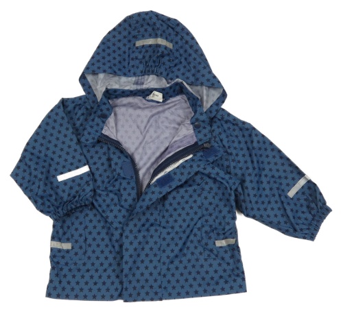Tmavomodrá šušťáková nepromokavá bunda s hviezdami a kapucňou