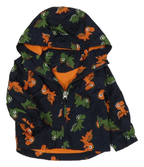 Tmavomodrá šušťáková jarná bunda s dinosaurami a kapucňou St. Bernard