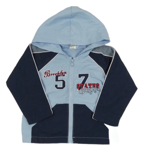 Světlemodro-tmavomodrá šušťáková jarná bunda s číslom a kapucňou