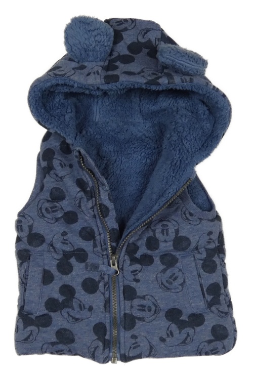 Modrá tepláková zateplená vesta s Mickeym a kapucňou George