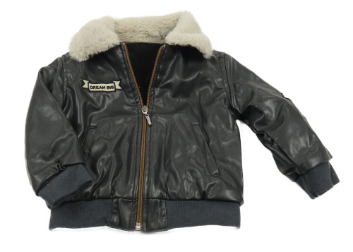 Antracitová koženková bunda s nášivkou a kožešinou