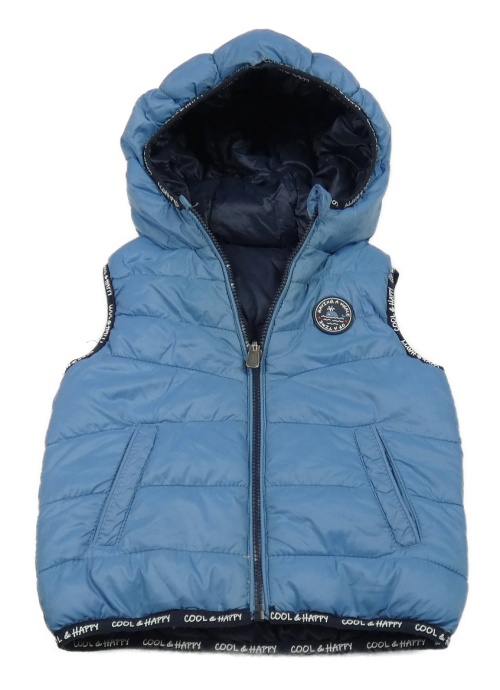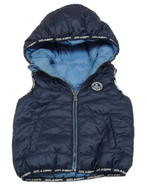 Modrá šušťáková prešívaná zateplená obojstranná vesta s kapucňou C&A