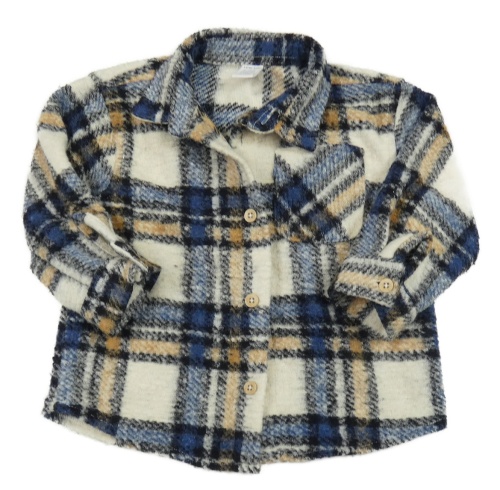 Béžovo-tmavomodrá kockovaná vlnená košeľová bunda