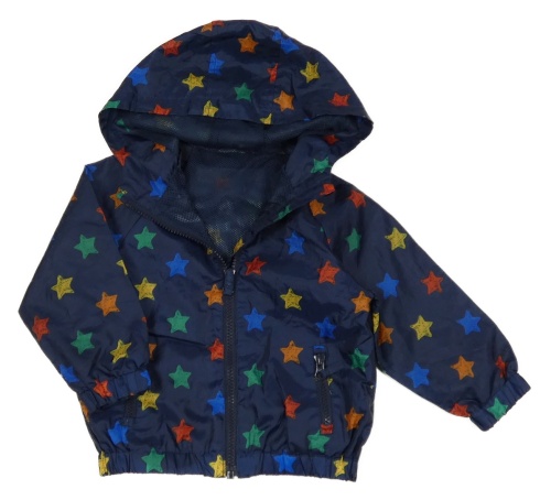 Tmavomodrá šušťáková bunda shvězdičkami a kapucňou Tu