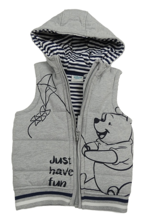 Sivá melírovaná prešívaná zateplená vesta s Pú a pruhmi a kapucňou Disney