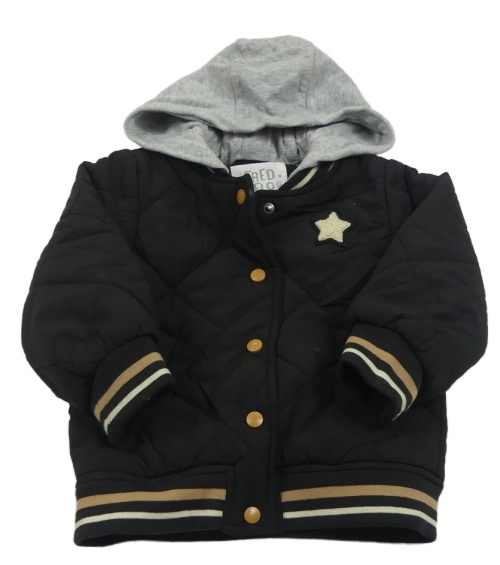 Čierna šušťáková zateplená bunda s hviezdičkou a teplákovou kapucňou F&F