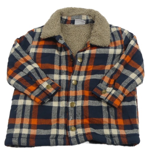 Tmavomodro-oranžová kockovaná zateplená košeľová bunda F&F