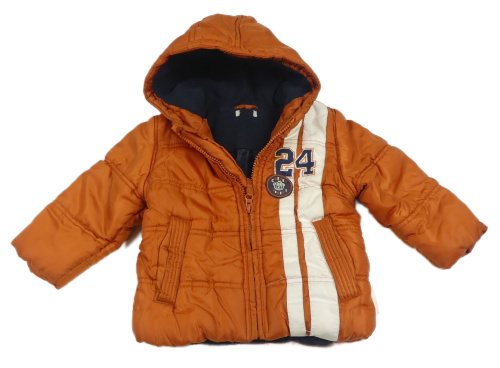 Hrdzavá šušťáková zimná bunda s číslom a kapucňou
