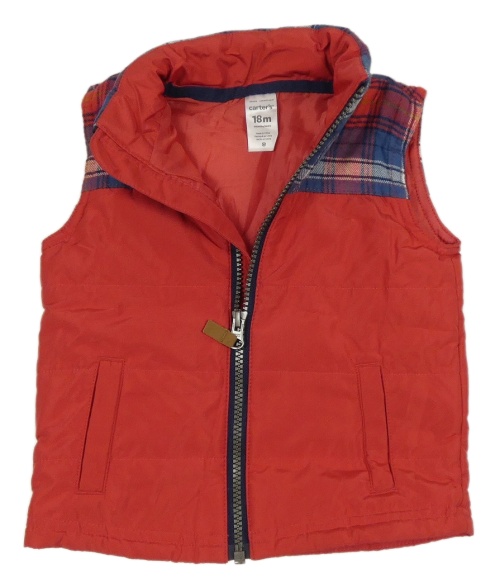 Červeno-kockovaná šušťáková lehce zateplená vesta Carter's