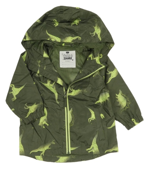 Khaki šušťáková jesenná bunda s dinosaurami a kapucňou F&F