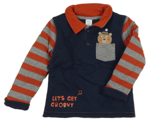 Tmavomodro-sivo-hnedá zateplená polo mikina s medvěďom C&A
