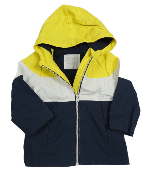 Žlto-bielo-tmavomodrá nepromokavá jesenná bunda s kapucňou F&F