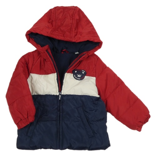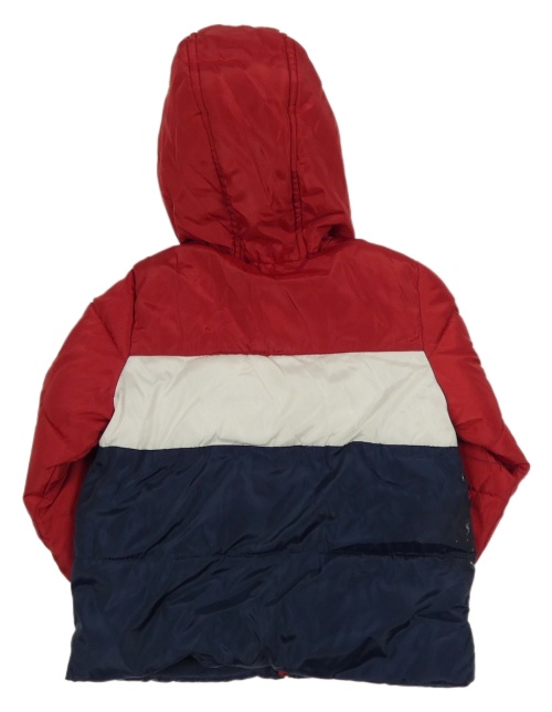 Červeno-tmavomodro-biela šušťáková zimná bunda s kapucňou Fagottino