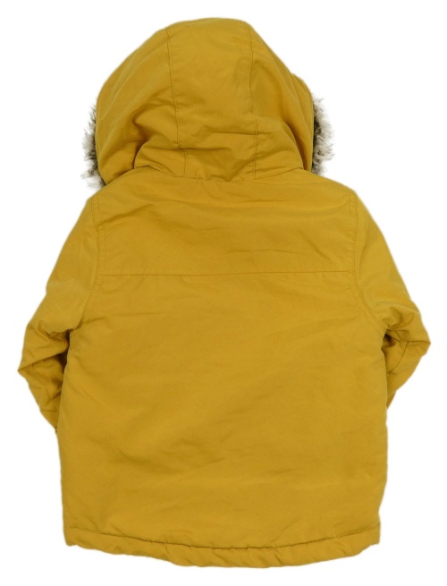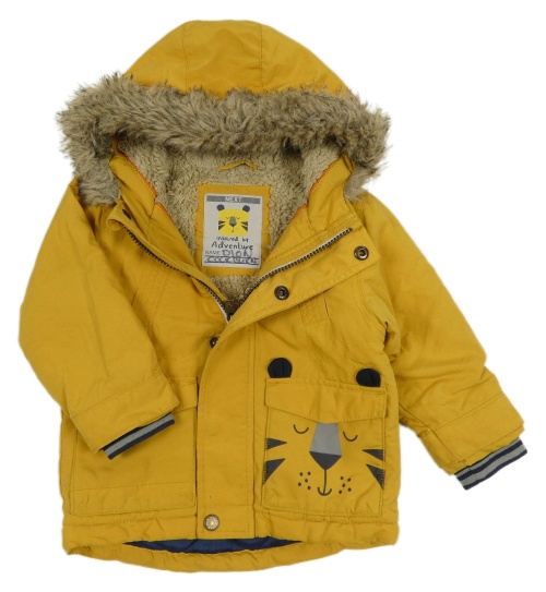 Horčicová šušťáková zimná bunda s tigrom a kapucňou s kožešinou Next