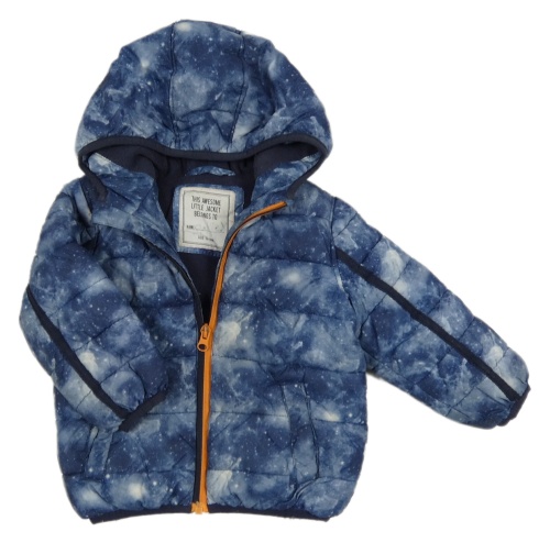 Tmavomodrá vzorovaná šušťáková prešívaná zimná bunda s kapucňou Matalan
