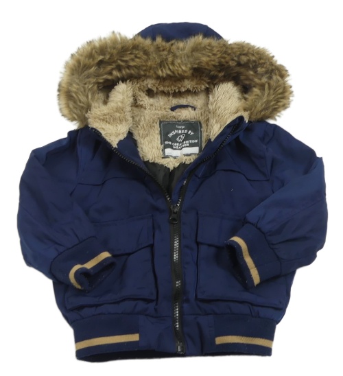 Tmavomodrá šušťáková zimná bunda s kapucňou s kožešinou George