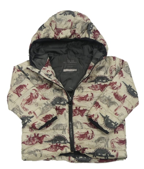 • Béžová melírovaná prešívaná šušťáková zateplená bunda s dinosaurami a kapucňou PRIMARK