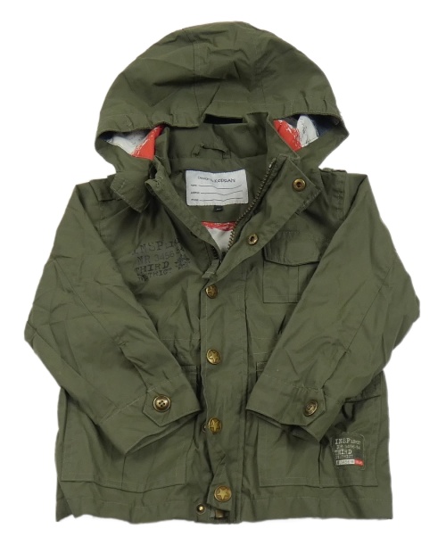 Khaki šušťáková jesenná bunda s nápisom a kapucňou KappAhl