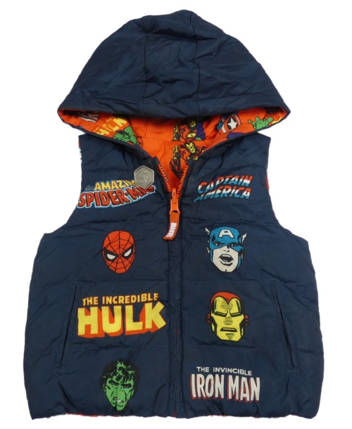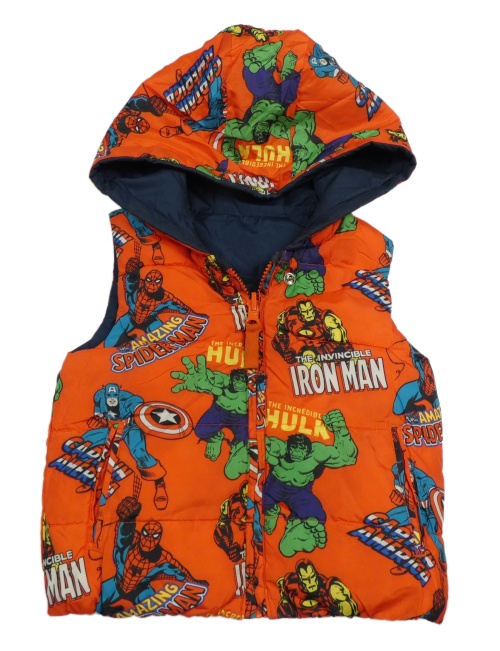 Červená šušťáková zateplená obojstranná vesta s Avengers a kapucňou Marvel