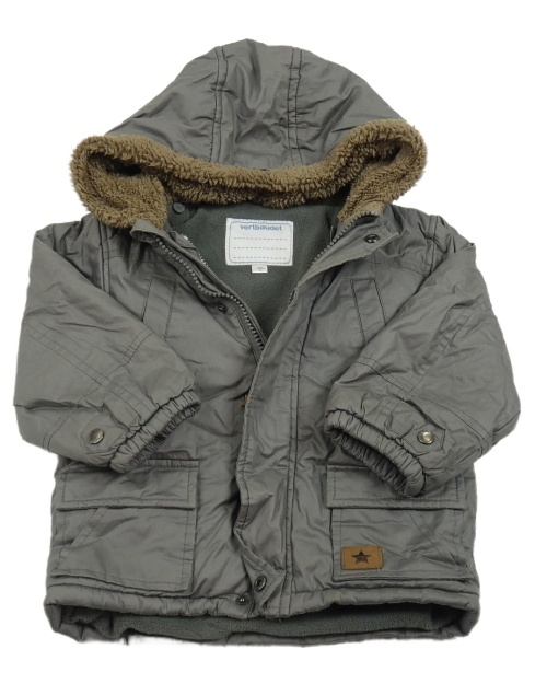 Sivá šušťáková zateplená bunda s kapucňou s kožešinou Vertbaudet