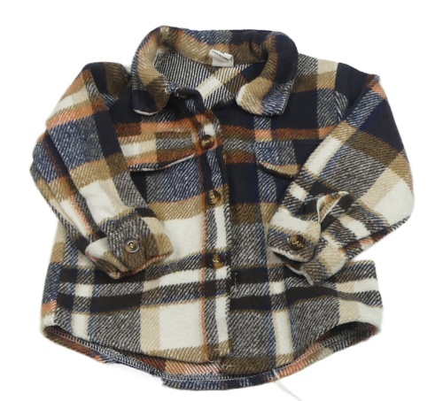 Tmavomodro-bielo-béžovo-oranžová kockovaná košeľová bunda Shein