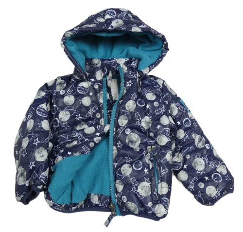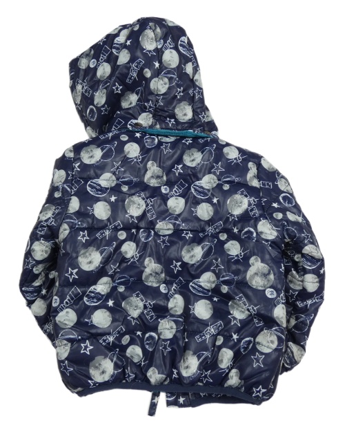 Tmavomodrá šušťáková prešívaná zateplená bunda s mesiacmi a kapucňou