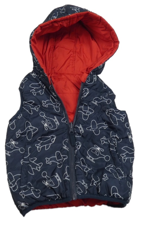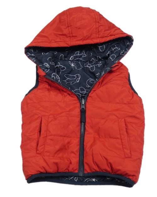 Červená šušťáková obojstranná vesta s kapucňou Topolino