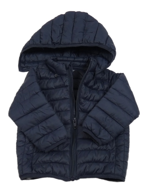 Tmavomodrá prešívaná šušťáková zateplená bunda s odopínacíá kapucňou