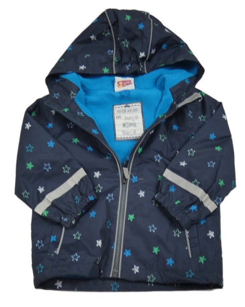 Tmavomodrá šušťáková lehce zateplená bunda s hviezdami a kapucňou Topomini
