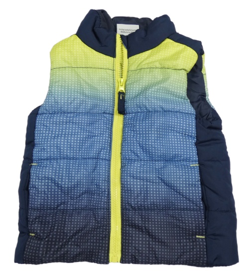 Tmavomdoro-modro-zelená vzorovaná šušťáková zateplená vesta Topomini