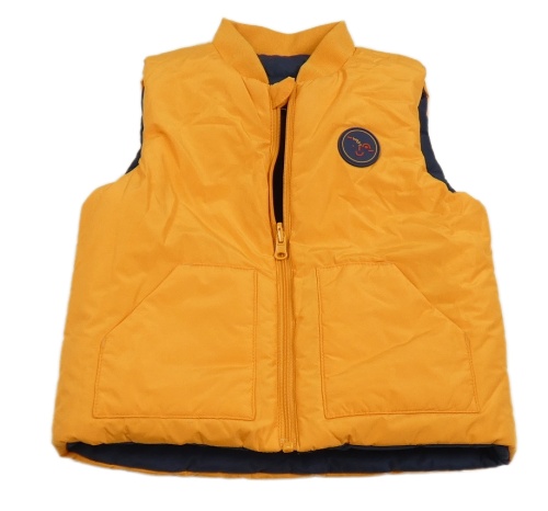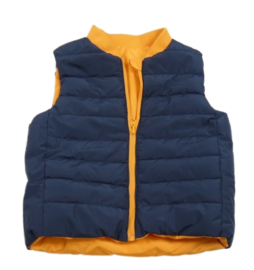 Oranžovo-tmavomodrá šušťáková obojstranná zateplená vesta