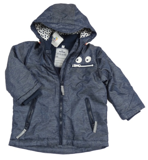 • Nové - Tmavomodrá melírovaná šušťáková zateplená bunda s príšerkou a kapucňou Topomini