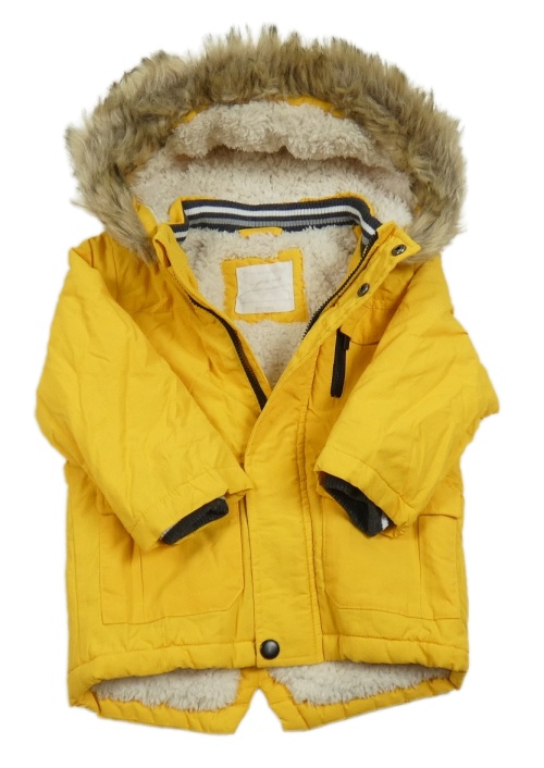 Žltá šušťáková zateplená bunda s kapucňou s kožešinou Primark