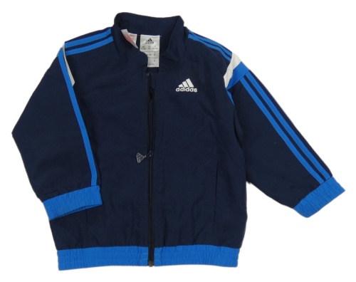 Tmavomodrá šušťáková jesenná bunda s logom Adidas