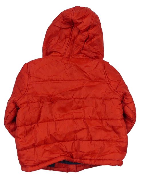 • Červená šušťáková prešívaná zimná bunda s nášivkami a kapucňou Mothercare