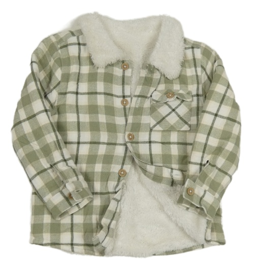 Kaki-biela kockovaná zateplená košeľová bunda Tu