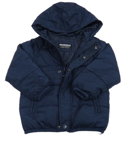 Tmavomodrá šušťáková prešívaná zateplená bunda s logom a kapucňou McKenzie