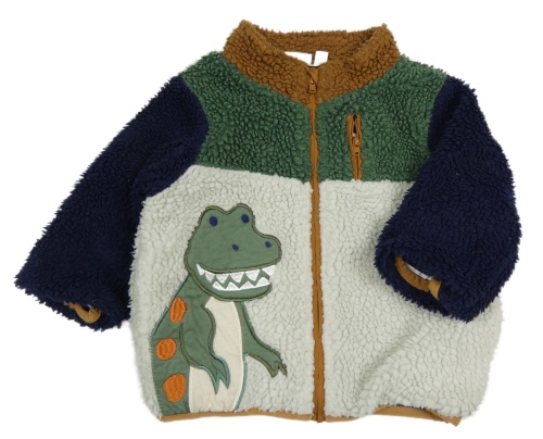 Zeleno-bielo-tmavomodrá huňatá podšitá bunda s dinem Jojo Maman Bébé