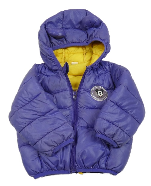 Fialová šušťáková zimná bunda s Mickey Mousem a kapucňou